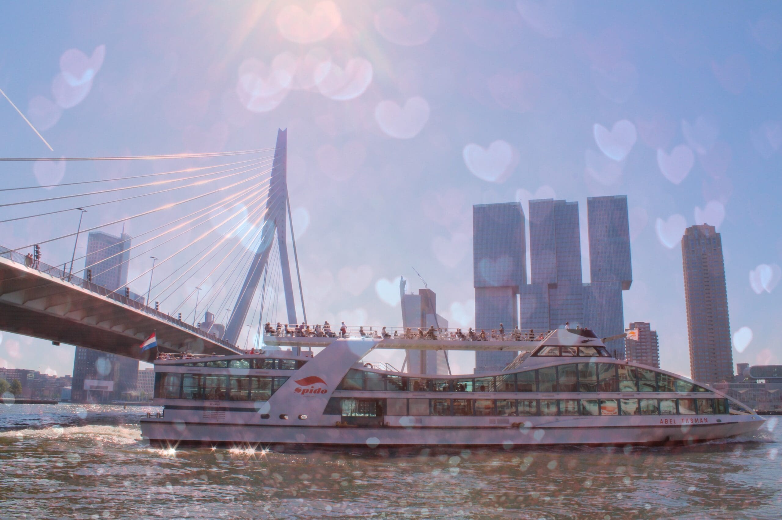 Wil je iets speciaals doen voor Valentijnsdag? Kies dan voor de Valentine Dinner Cruise, een exclusieve avondtocht waarbij jullie genieten van een luxe diner terwijl Rotterdam langzaam aan jullie voorbij glijdt. Met sfeervolle verlichting, een intieme setting en een prachtig uitzicht op iconische plekken zoals de Erasmusbrug en de Kop van Zuid, wordt dit gegarandeerd een romantische avond om nooit te vergeten.