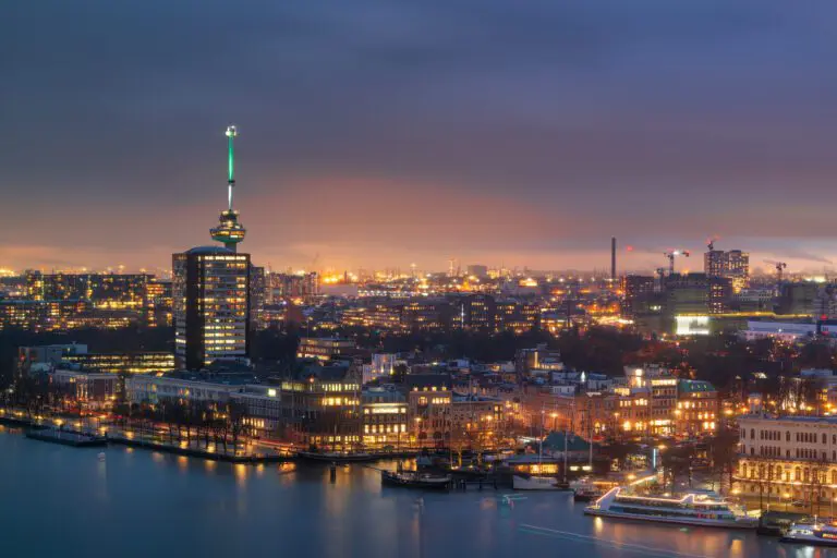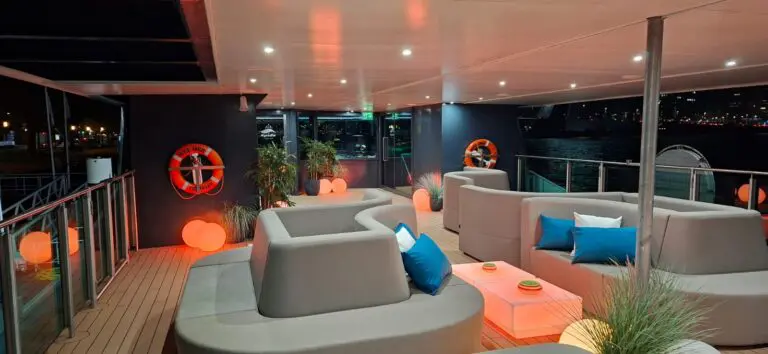 As you board the Prinses Amalia, you’ll immediately feel welcome. The captain welcomes you personally and after you are assigned a nice spot, you can enjoy a glass of welcome prosecco (alcohol or non-alcohol). As the engines begin to hum and the Rotterdam skyline slowly comes into view, a magical world of lights and enchanting sights unfolds. The city comes to life as illuminated ports and impressive buildings glide past, while you prepare for an unforgettable evening.