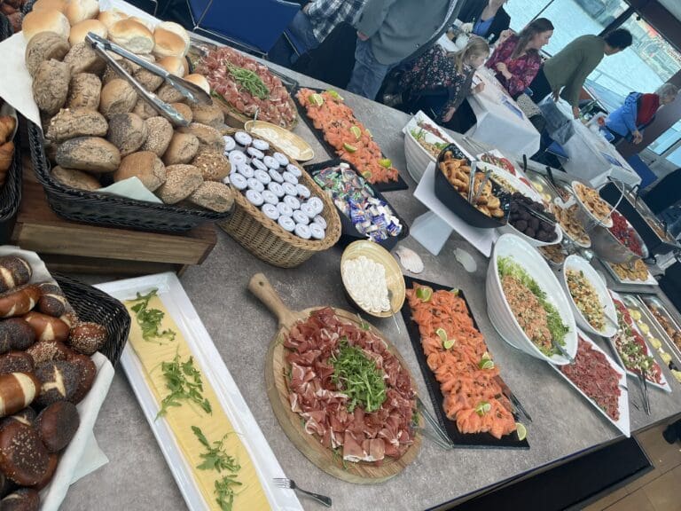 A sumptuous Pentecost brunch buffet awaits you on board: fresh rolls, hot dishes, salads, sweets, and a special children’s buffet. While you enjoy your meal, the scenery of bridges, ships, and port activities glides by.
