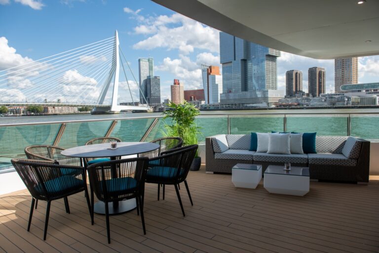 Een vergadering op het water biedt niet alleen een professionele setting, maar ook een moment van rust en ontspanning. Even weg van de vaste werkplek, in een omgeving waar de focus kan liggen op samenwerking, nieuwe ideeën en strategisch overleg. Tussen de vergadersessies door kun je genieten van een pauze op het buitendek, waar het uitzicht over de stad en de haven zorgt voor een verfrissende break.